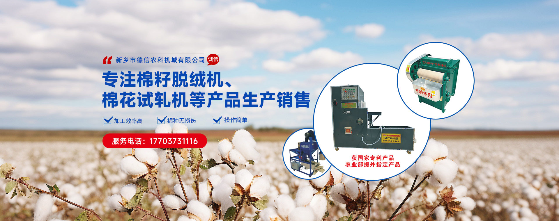 新鄉市德信農科機械有限公司,成立于2018年,位于河南省新鄉市紅旗區洪門鎮。毗鄰107國道、京港澳高速公路、高鐵站、汽車東站,地理位置十分優越、交通便利,四通八達。 是一家專注于各種農業科研育種加工等機械及配件的開發、生產裝配和銷售,服務為一體的企業。公司主要產品有種子脫粒機,棉花軋花機、棉花試軋機,米子棉清理機、棉子脫絨機,種子精選機六大系列及各種配件等。產品注重于經濟性、廣泛適應性和可操控性,以精湛的技術力量。良好的企業信譽,得到廣大新老客戶的好評。 企業始終以用產滿意為目標,以人為本、創新為先、質量優先、持續改進,竭誠服務、終身維護的質量管理方針;從創新技術,生產銷售產品,提供服務為企業宗旨。堅持“用戶優先、服務為本”的經營準則,確保用產使用時放止順心稱心